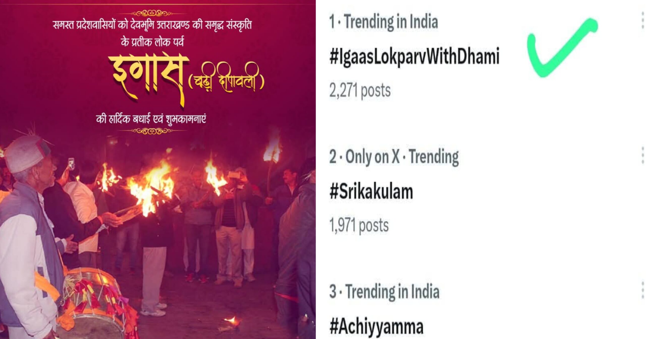 इगास पर्व के अवसर पर सोशल मीडिया पर #IgaasLokparvWithDhami ट्रेंड करता रहा।