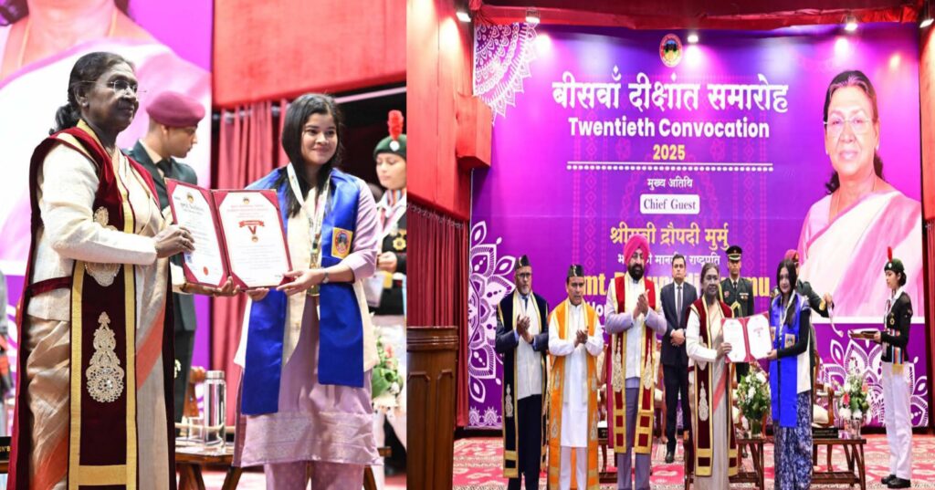 राष्ट्रपति मुर्मु ने कहा कि देश ने वर्ष 2047 तक भारत को विकसित राष्ट्र बनाने का लक्ष्य निर्धारित किया है। इसमें युवाओं की भूमिका सबसे महत्वपूर्ण है। उन्होंने विश्वास व्यक्त किया कि “भारत का युवा वर्ग अपनी प्रतिभा, समर्पण और परिश्रम से इस लक्ष्य को अवश्य प्राप्त करेगा।”